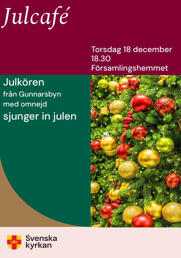 Kom och lyssna på Gunnarsbykören och njut till tonerna av jullåtar samtidigt som du fikar i lugn och ro. Välkomna till ett avslappnat julcafé!