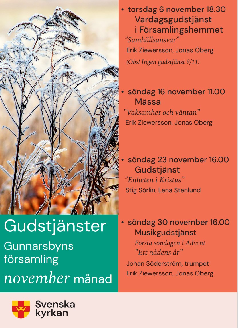 Stig Sörlin och Lena Stenlund kommer till Gunnarsbyn och firar Gudstjänst tillsammans med alla besökande. Kom och var med du också 🙂