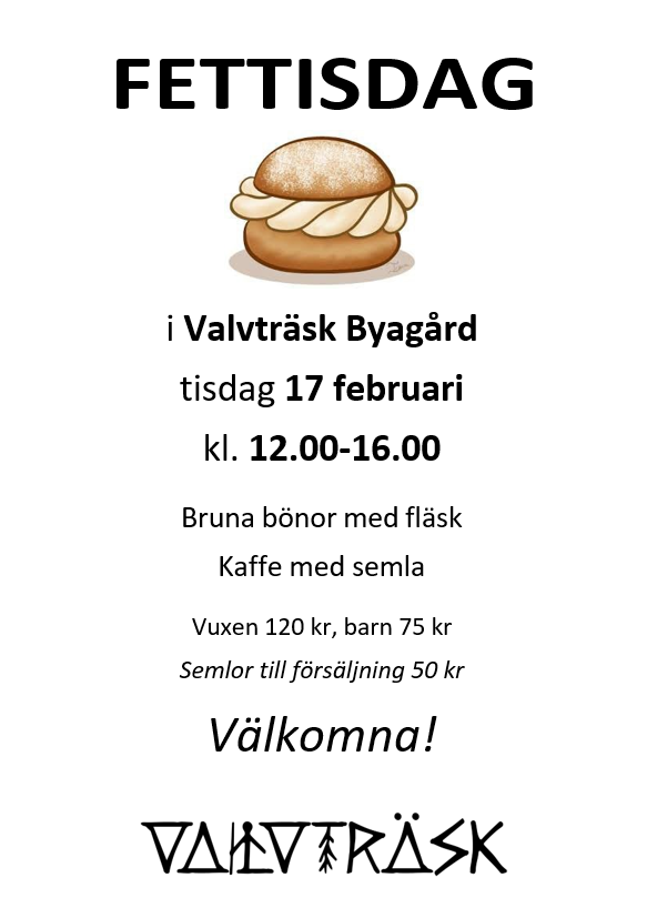 Fettidag i Valvträsk! + Lägg till i Google Kalender + iCal / Outlook export 00 dagar 00 timmar 00 minuter 00 sekunder Datum 17 feb 2026 Tid 12:00 - 16:00 Platser Byagården, Valvträsk Byagård Dela det här evenemanget