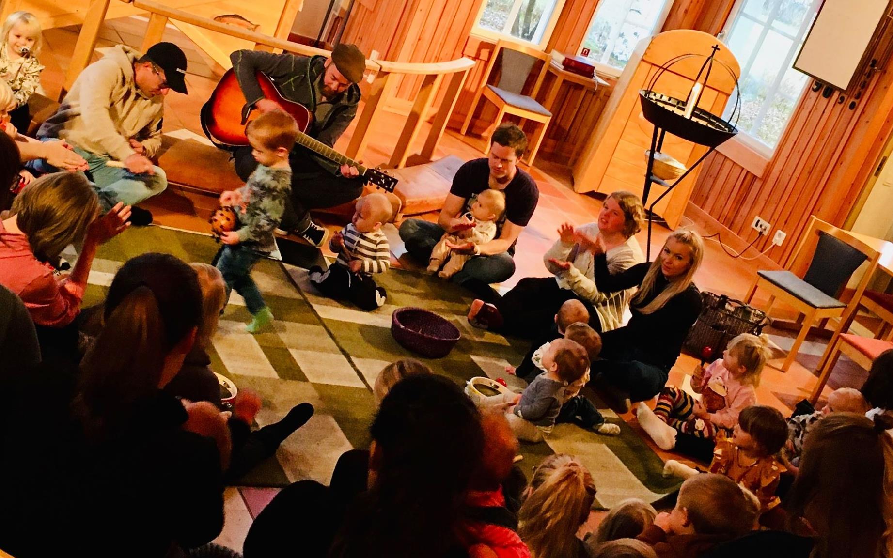 Varje torsdag ojämn vecka träffas den som vill leka en stund, sjunga några enkla barnsånger och fika tillsammans. Passar daglediga mammor och pappor!