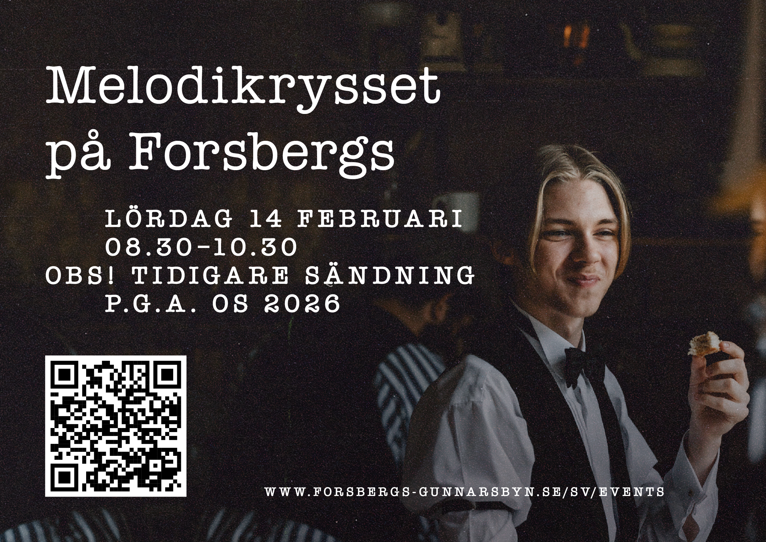Melodikrysset-frukost lördag 14 februari 08.30–10.30! 🍂 ☕️ Notera att det är en timme tidigare än vanligt, då sändningstiden justerats under OS 2026! ❄️
