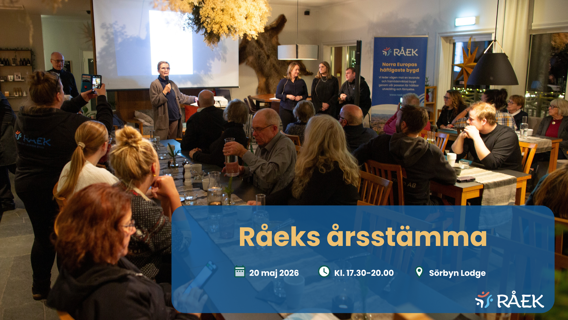 Råek årsstämma Råek årsstämma mer info inom kort + Lägg till i Google Kalender + iCal / Outlook export 00 dagar 00 timmar 00 minuter 00 sekunder Datum 20 maj 2026 Tid 17:30 - 20:00 Platser Sörbyn Lodge Sörbyn Arrangör Råek Telefon 0924 213 59 E-post info@raek.nu Webbplats https://www.www.raek.nu Dela det här evenemanget
