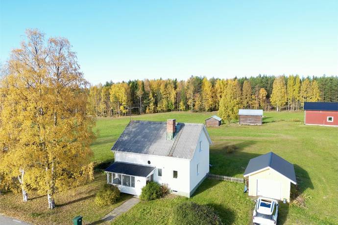 1½-plansvilla med källare, underhålls-och renoveringsbehov, vacker byggnad med 3 r o k, boa 80 m², bia 80 m² + inredningsbar ovanvåning. 2 tomter, 1.600 + 960 m². Här bor man nära Råneälven och nära till badplats.